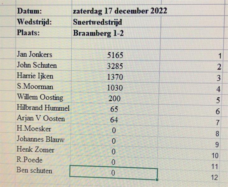 Snertwedstrijd 17 dec 2022